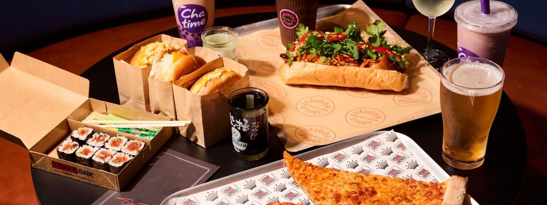 Every corner brings something new - from cult favourite burgers available any time of the day to handmade sushi rolls, bubble tea, pizza by the slices, and local heroes serving up fresh flavours with attitude.